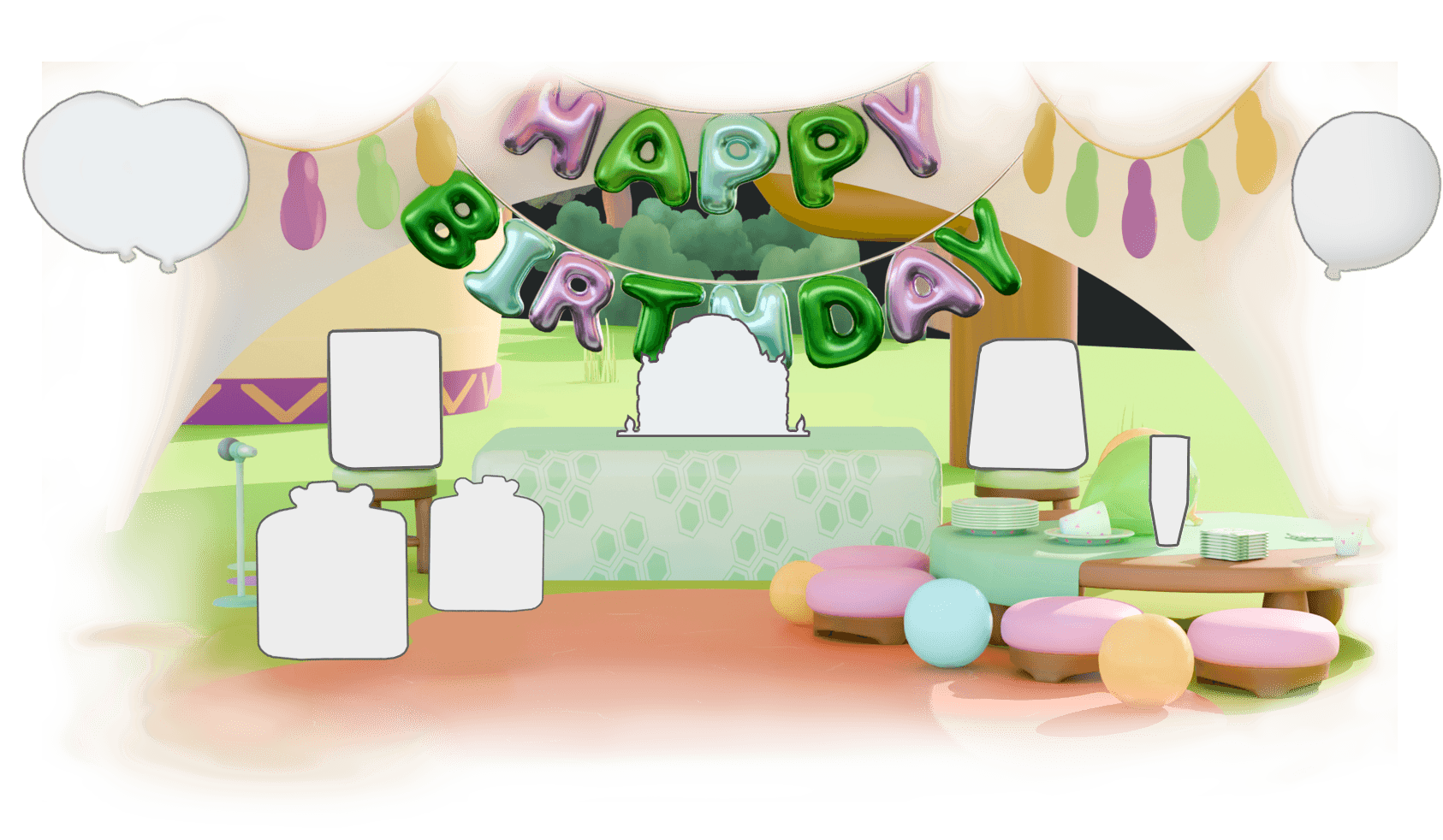 Drag and drop the party items back to the right place to help Teko save the party!